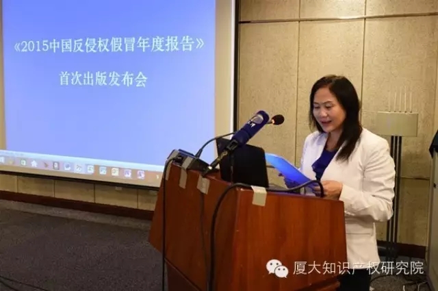 林秀芹教授在发言时首先感谢了全国双打办领导、反侵权假冒创新战略联盟及各供稿单位在报告编纂过程中做出的重要贡献。随后,林教授简要介绍了报告的编写流程及主要内容。《2015中国反侵权假冒年度报告》包括了综述、司法篇、部门篇、地方篇、行业篇、法规政策篇、案例篇等七个篇章,全面系统地总结了我国2014年度反侵权假冒的基本工作与取得的瞩目成就。最后,林教授还指出了编写出版我国首部反侵权假冒工作年度报告的重要意义。报告的编纂出版不仅出于我国施行国家创新驱动战略和实现经济结构转型的内生需求,也向世界宣告了中国打击假冒伪劣、走创新发展之路的决心。